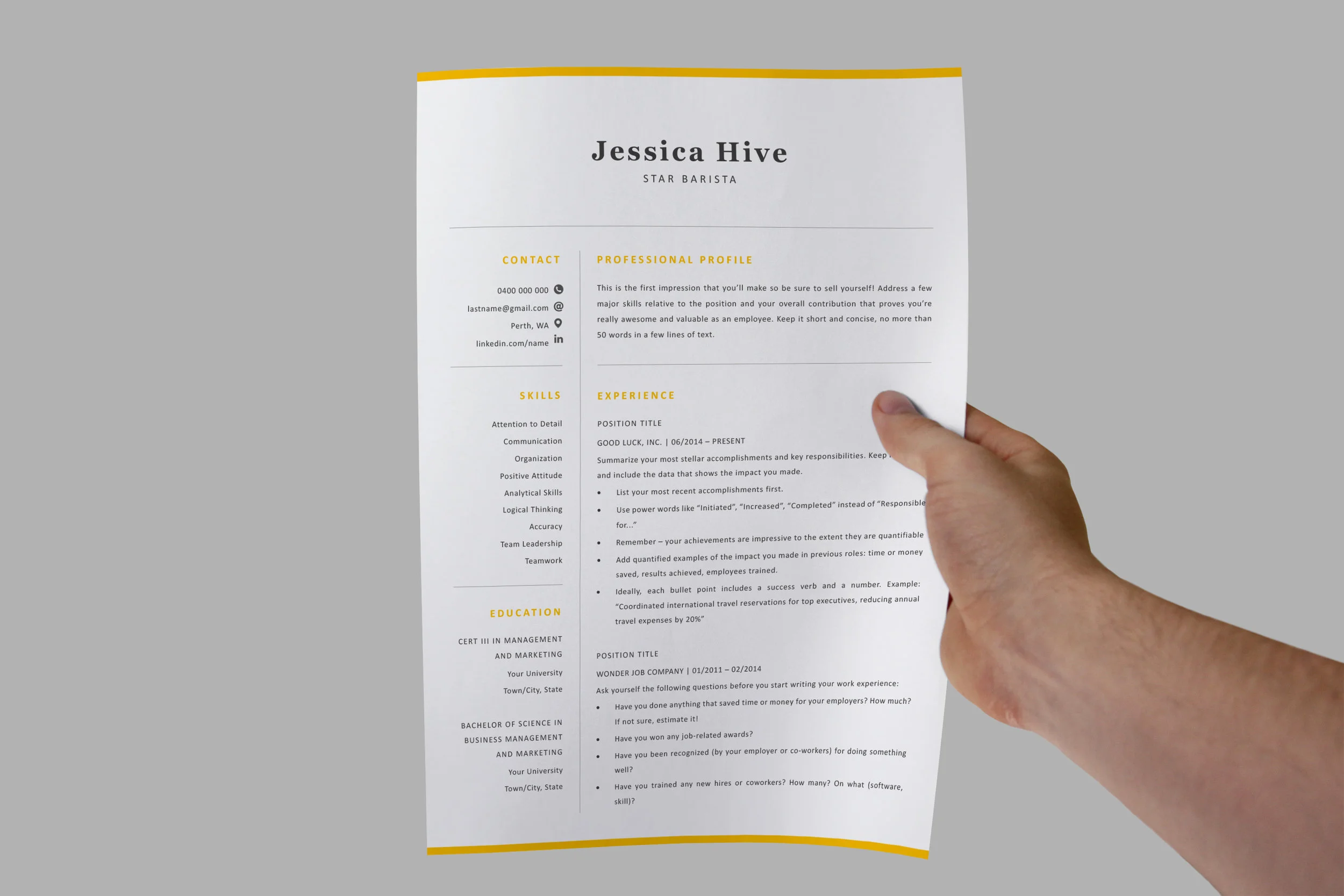 Make a start on your Resume by filling in the Resume Template. Feel free to make it your own!
